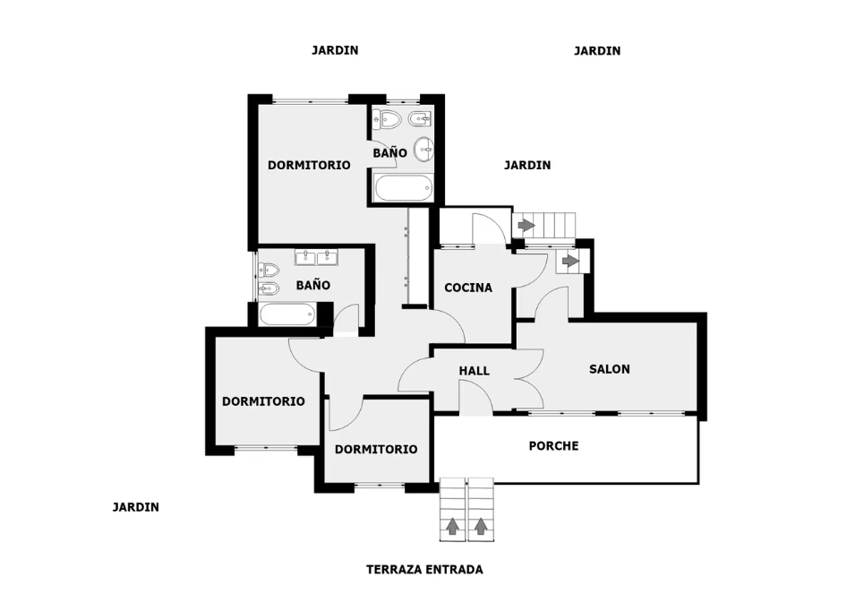 HAUPTGESCHOSS: Flur, Wohnzimmer, 3 Schlafzimmer, das Hauptschlafzimmer mit eigenem Bad, komplettem Badezimmer und separater Küche.