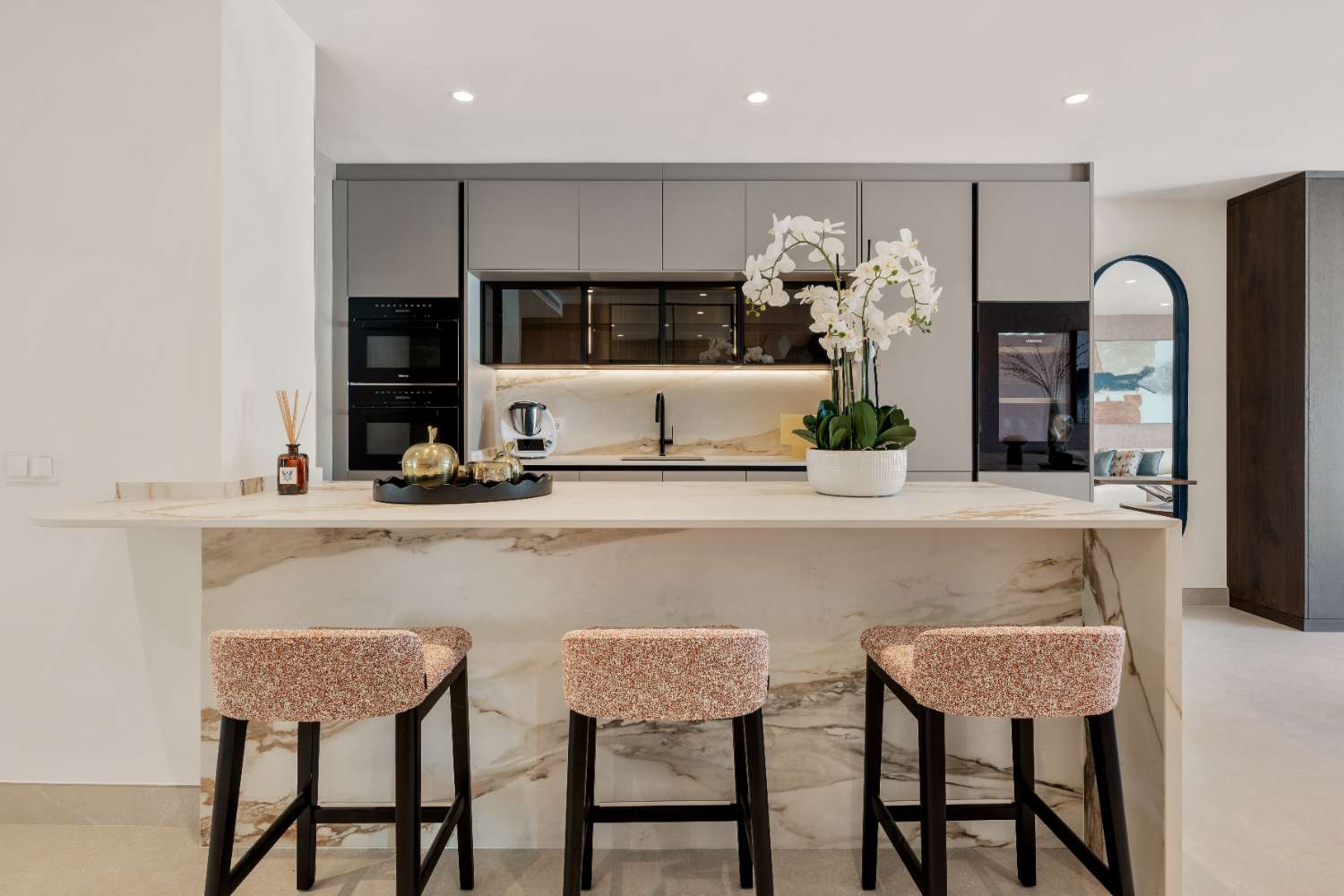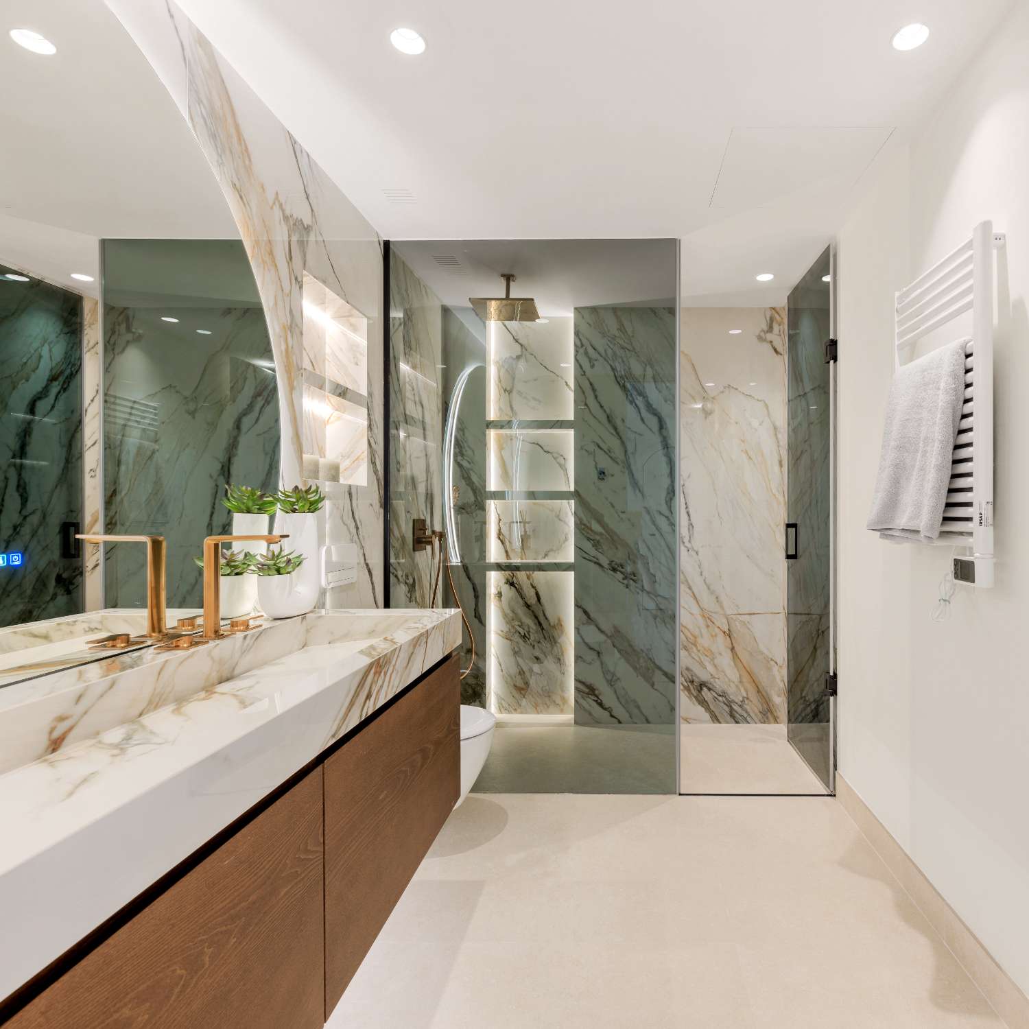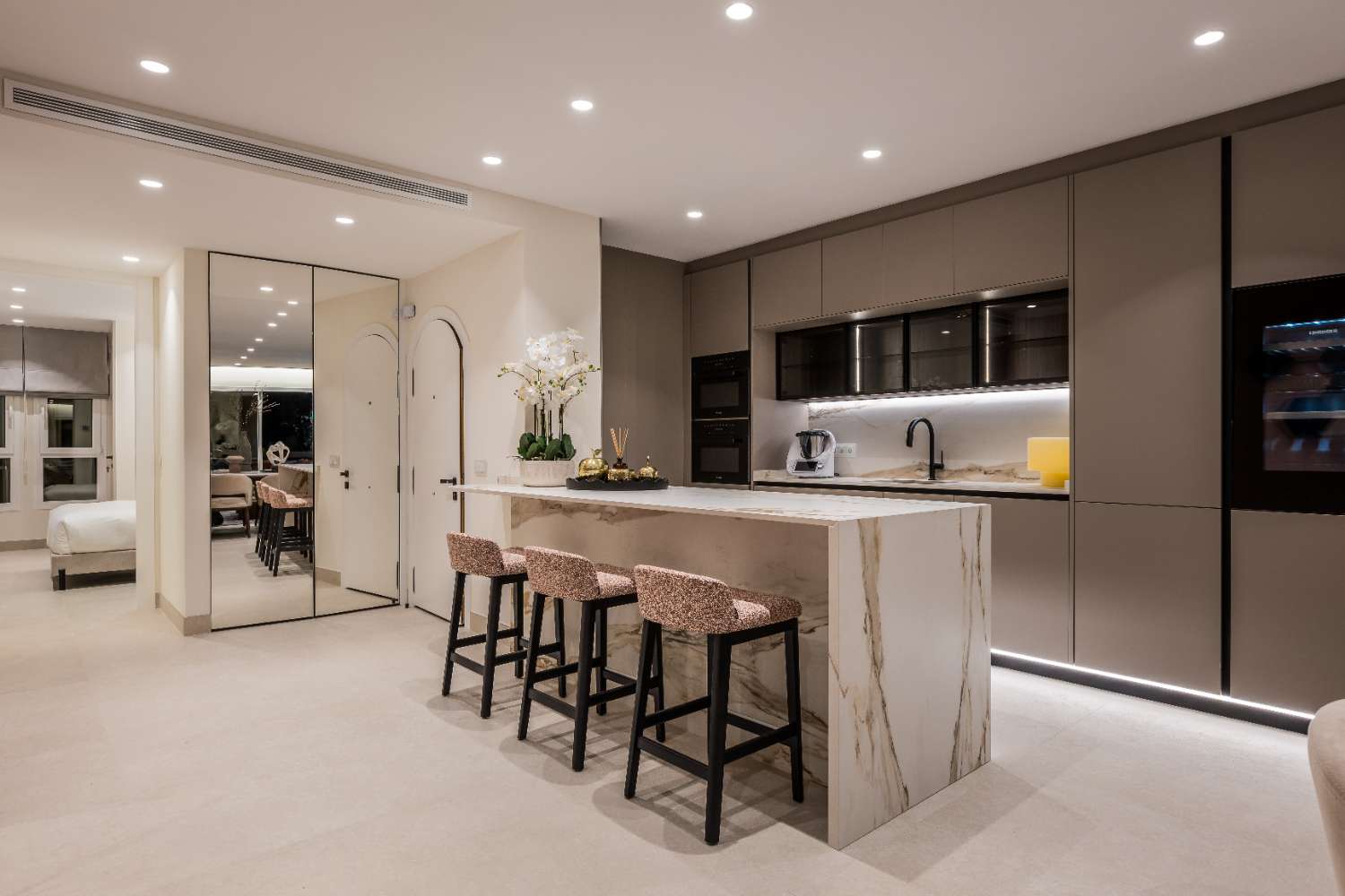 Diseñado con elegancia y confort, el apartamento cuenta con una distribución abierta que incluye una cocina de diseño totalmente equipada con electrodomésticos alemanes de alta gama y un comedor luminoso y elegante. Extras sofisticados como una chimenea eléctrica, un sistema de sonido Bang & Olufsen y armarios a medida realzan el espacio.