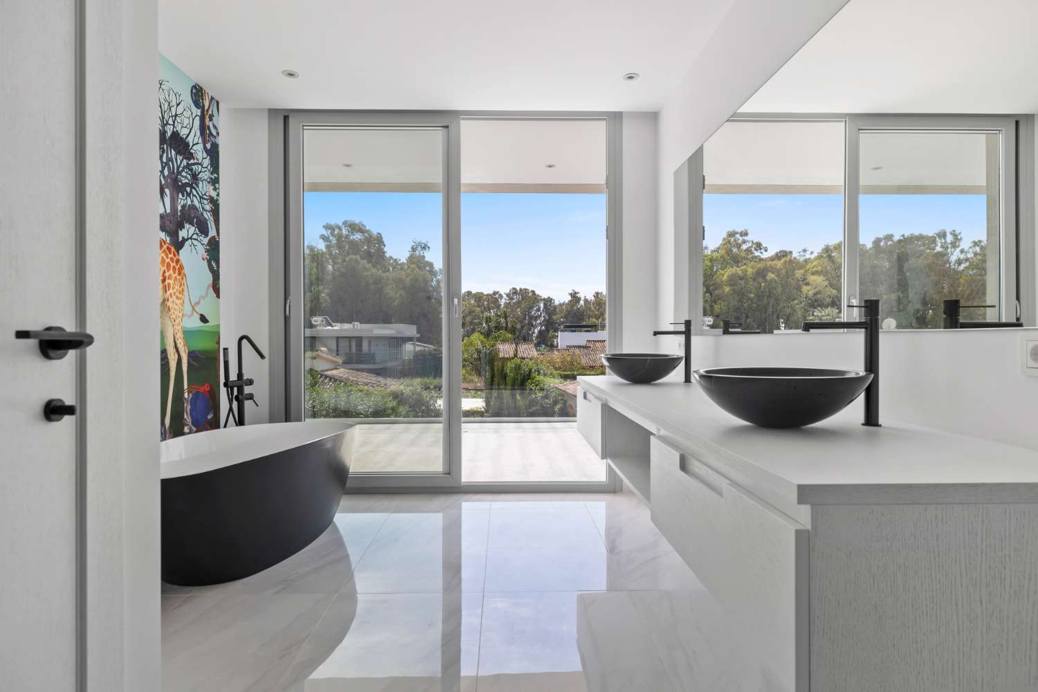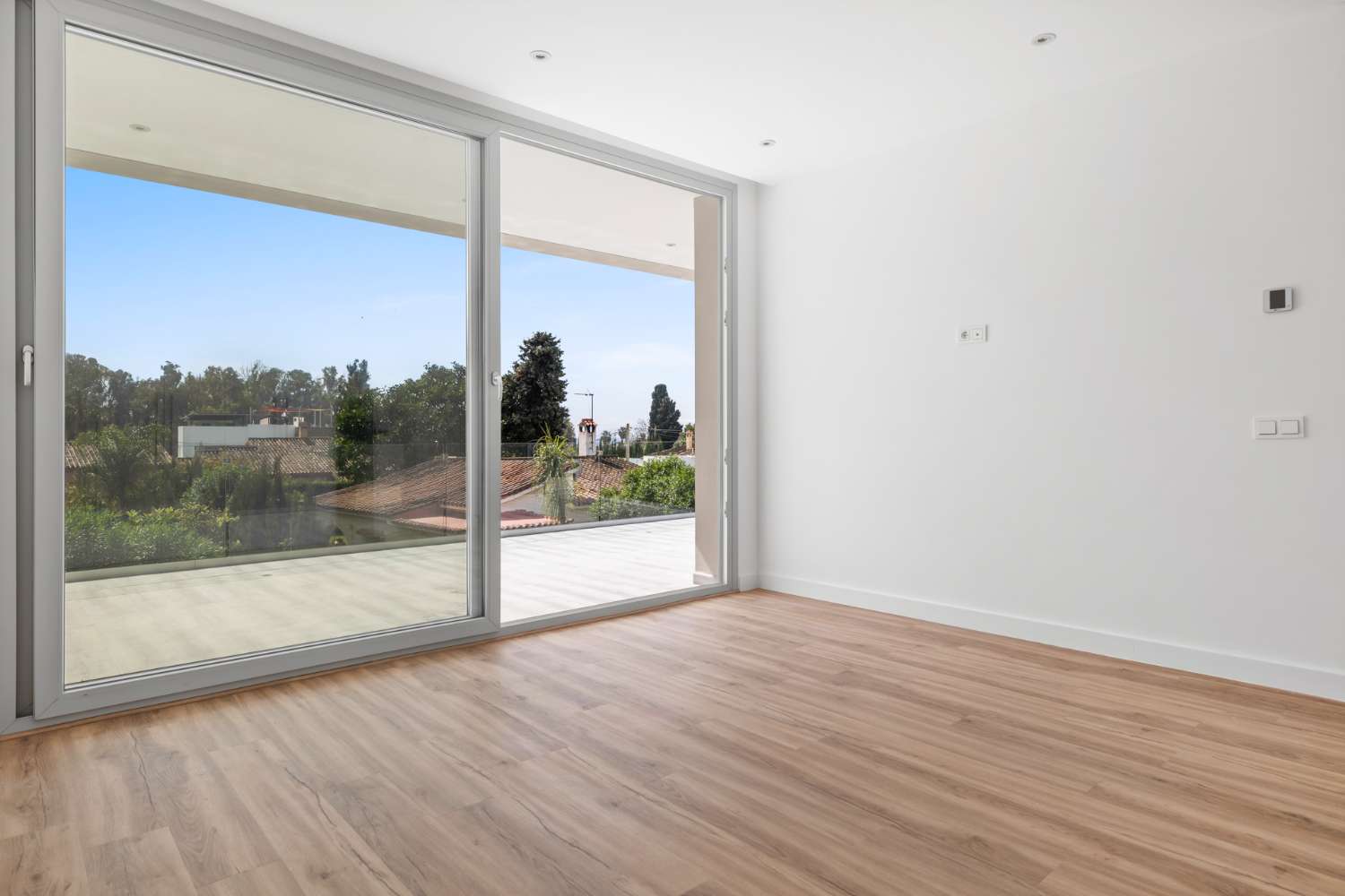 Primera planta: Dormitorio principal en suite con vestidor y un dormitorio de invitados en suite. Terrazas privadas.
