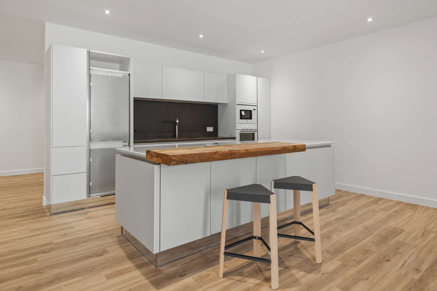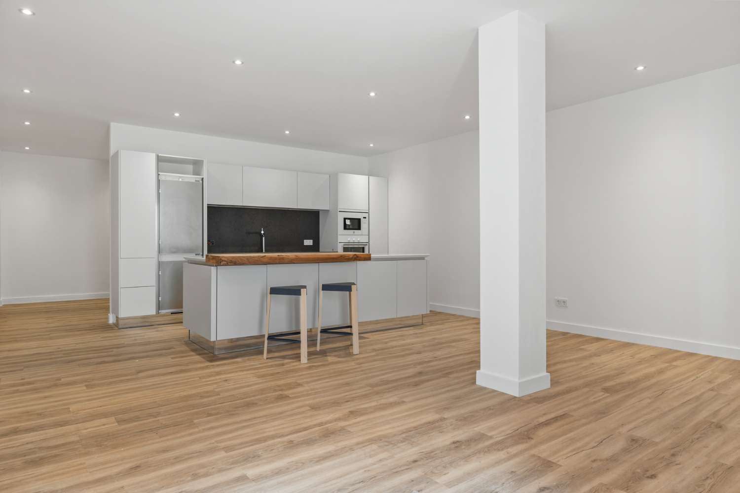 Planta principal: Entrada, salón-comedor con cocina totalmente abierta con electrodomésticos Bosch, aseo de invitados y un dormitorio de invitados en suite. Acceso desde todas las zonas a las terrazas cubiertas y descubiertas y a la piscina privada.