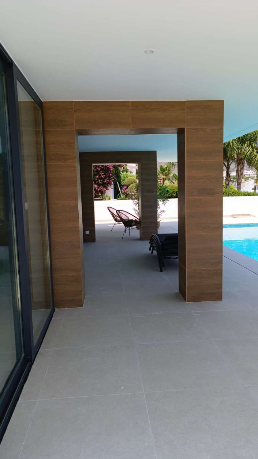 La planta principal cuenta con un luminoso salón-comedor con una cocina abierta INKO equipada con electrodomésticos Gaggenau, con acceso directo a terrazas cubiertas y descubiertas, piscina privada, jardín y zona de barbacoa.